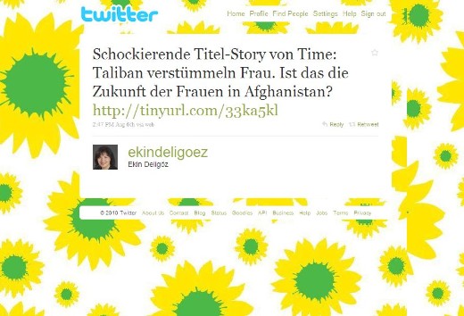 Der andere Teil der GRÜNEN - siehe das Bild mit der Äußerung der grünen Abgeordneten Ekin Deligöz - scheut sich ganz offenkundig nicht, selbst das schlimmste Leid der Menschen zur Rechtfertigung und Verlängerung des Afghanistan-Krieges zu instrumentalisieren. Der von Deligöz gepostete Link führt zum Titelbild der englischen Time, auf dem eine Frau zu sehen ist, die einen Großteil ihrer Nase verloren hat. Dass in Kriegen so etwas immer wieder - und zwar zigfach jeden Tag - geschieht und auch durch solche grausigen Bilder dokumentiert wird, ist zu erwarten. Dass GRÜNE jetzt - nachdem ihre Hauptargumente für den Krieg, wie etwa das harmlose Bauen von Brunnen und Schulen für die Zivilbevölkerung, durch die Wirklichkeit für alle offenkundig ad absurdum geführt wurden - damit beginnen, schlimmste Verbrechen für einen Krieg zu verwenden, der genau solche Leiden erneut produziert, stellt eine neue Qualität dar. Und genau diese dreiste Instrumentalisierung von Leid korrespondiert mit den Lügen, die Rot-Grün beim Kosovo-Krieg (Dokumentation: "Es begann mit einer Lüge, Deutschland im Kosovo 1999") veranstaltet hat. Wie gesagt, es wäre Aufgabe des Bundesparteitages der GRÜNEN, die Parlamentsfraktion zur Raison zu bringen, sofern er es denn wollte. Eben.